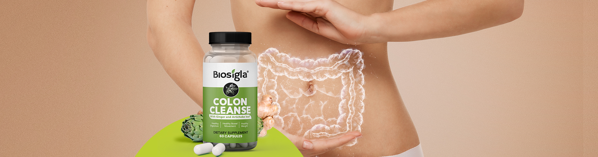 Biosigla – Colon Cleanse capsules contain the  necessary nutrients needed for optimal gut functions. This is done through delivery of major gut health sibstances into the digestive system. This includes ginger extract, artichoke laf extract, dandelion leaf extract, plantago psyllium husk powder, and a probiotic blend.